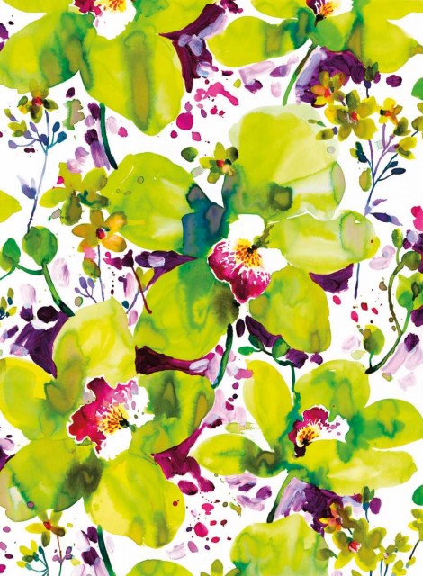 Fototapet floral care-ti transmite o explozie de vitalitate prin alaturarea verdelui luxuriant cu prospetimea florilor in tuse de acuarela.