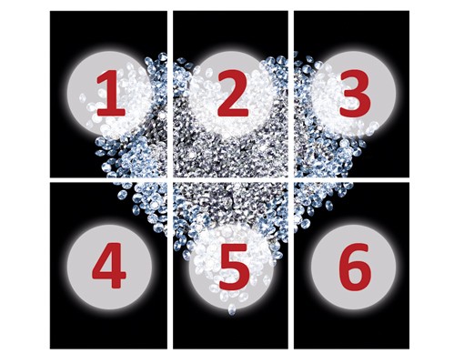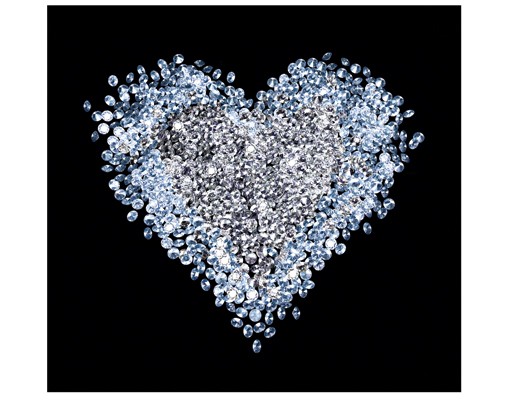 Un fototapet care va capta toate privirile prin contrastul alb stralucitor si irizatii albastre pe contur, al luminii reflectate de sutele de diamante aranjate intr-o compozitie care sugereaza emotie si fundalul negru absolut mat.