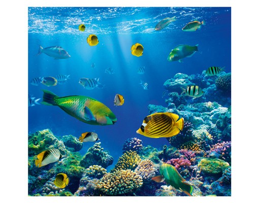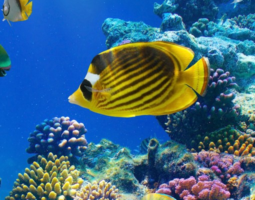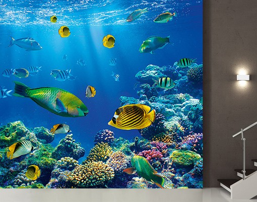 Fascinanta lume subacvatica, cu pestisori aurii si multicolori, si plante incredibile intr-un albastru infinit innobilat de razele soarelui .