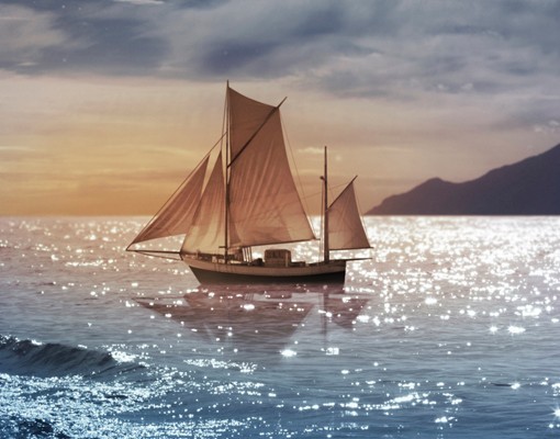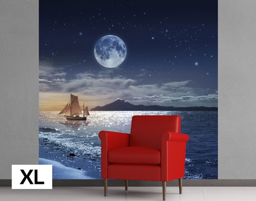 Ce poate fi mai frumos de atat?! Aceasta fototapet fascineaza prin imaginea ireal de frumoasa a marii, a lunii, a stelelor care se reflecta in ea. Iar in tot acest basm, un vas cu panze pluteste linistit invaluit in maretia din jur.