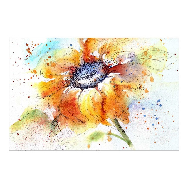 Acuarela impresionanta cu floarea soarelui, poate vedeta florala pentru interioare.