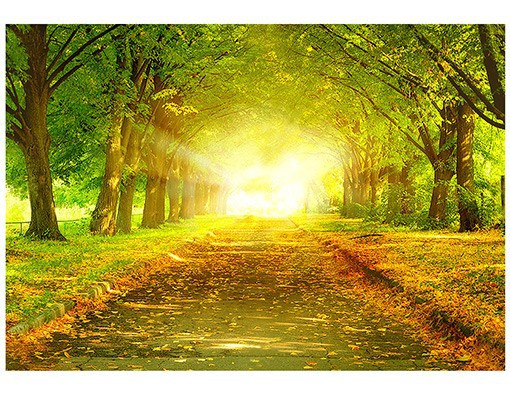 O imagine plina de romantism care te-ndeamna la o plimbare in parc, toamna, pe covorul frunzelor aramii. O imagine care creeaza un efect optic 3D datorita unghiului drumului in perspectiva. Drumul spre lumina poate reprezenta simbolic calatoria spre implinire.
