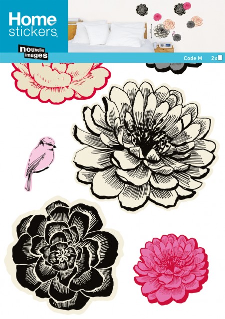 Instructiuni de folosire a stickerului: asigura-te ca suprafata pe care se aplica este uscata, curata si fara grasimi; dezlipeste cu atentie, pozitioneaza in locul dorit si preseaza cu o bucata de material textil pe toata suprafata. Se poate repozitiona. De retinut ca se aplica doar imaginea, a carui contur se decupeaza perfect, fara a fi necesar un fundal, acesta constituindu-l chiar peretele. Diametrul maxim al florii este 28.5 cm. Produsul contine doua planse cu ajutorul carora se poate realiza decorul din imagine. Produs in Franta.