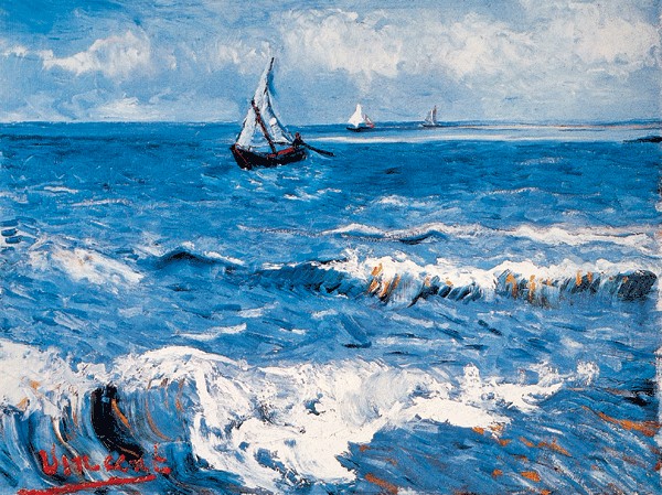 Poster de hartie caserat pe mucava realizat dupa opera de arta a lui Van Gogh, inramat cu rama din lemn de esenta exotica, alba cu usoare insertii gri,dreapta, profilata(cod 29), latime 4 cm si sticla float .