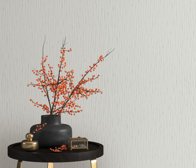 Tapet modern cu striatii, gri, vinil compact, extralavabil, pe suport de bumbac netesut (vlies). Dimensiune rola: 53cm x 10m.