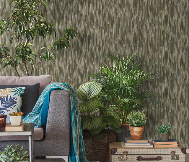 Tapet modern cu striatii, negru, auriu, vinil compact, extralavabil, pe suport de bumbac netesut (vlies). Dimensiune rola: 53cm x 10m.