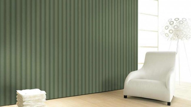 Tapet de lux superlavabil care creeaza un efect tridimensional datorita jocurilor de lumini si umbre si a designului care aminteste de pliruile unei armonice.