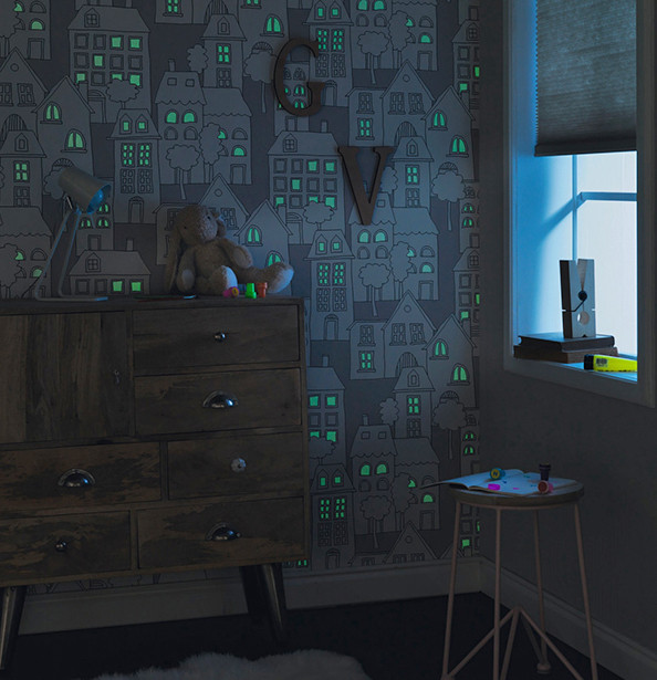 Un tapet minunat ale carui ferestre lumineaza in intuneric si care se poate colora de catre copii. Un tapet care tine de urat pe timp de zi si pe timp de noapte. O lume colorata va lua nastere pe peretele din camera copilului, creata chiar de manutele lui. Poate fi chiar si o activitate de familie sau impreuna cu bunicii cand vin in vizita.
