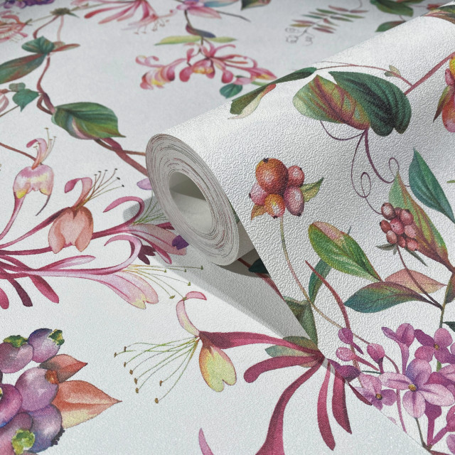 Cu acest tapet de la Marburg, veți transforma pereții într-un ocean de flori. Modelul floral combină liliacul cu caprifoiul înflorit și aduce privirea într-o grădină aranjată cu dragoste. Bucurați-vă de frumusețea naturală a acestui tapet cu accente romantice cu flori și puneți-l în scenă perfect cu un tapet sau o vopsea de perete potrivită. Designul face parte din colecția "Flora" și, datorită suportului de vlies de înaltă calitate, este ușor de aplicat fără timp de înmuiere. Tăiați bucăți de fâșii la inaltimea dorita, lipiți pe perete, presați fiecare fâșie pe rând, gata!
