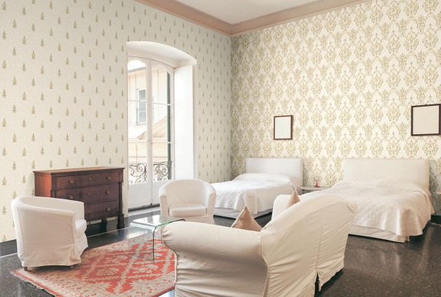 Tapet superlavabil clasic baroc cu model aerisit si suprafata texturata. Este un tapet rezistent la uzura si elegant pentru domitoare si livnguri.
