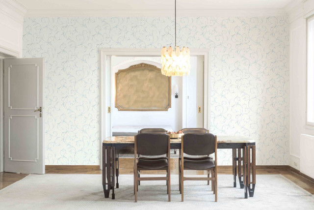 Tapet superlavabil cu model clasic baroc reprezentand lujeri fini cu frunzulite cu suprafata texturata si satinata. este un tapet rezistent si in acelasi timp elegant.