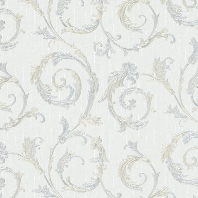 Tapet clasic potrivit pentru dormitor sau living. Reflexele irizante ii confera tapetului un aspect placut, perlat. Motivul vegetal de inspiratie rococo te duce cu gandul la stilul clasic vesnic de actualitate.